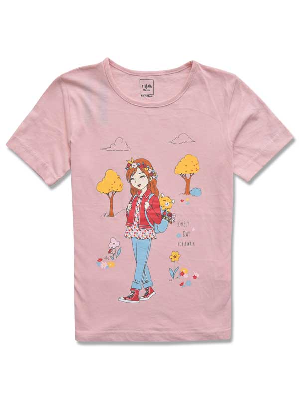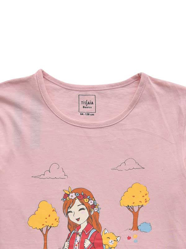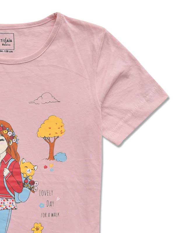 Girls Casual Half Sleeves Round Neck Tee.